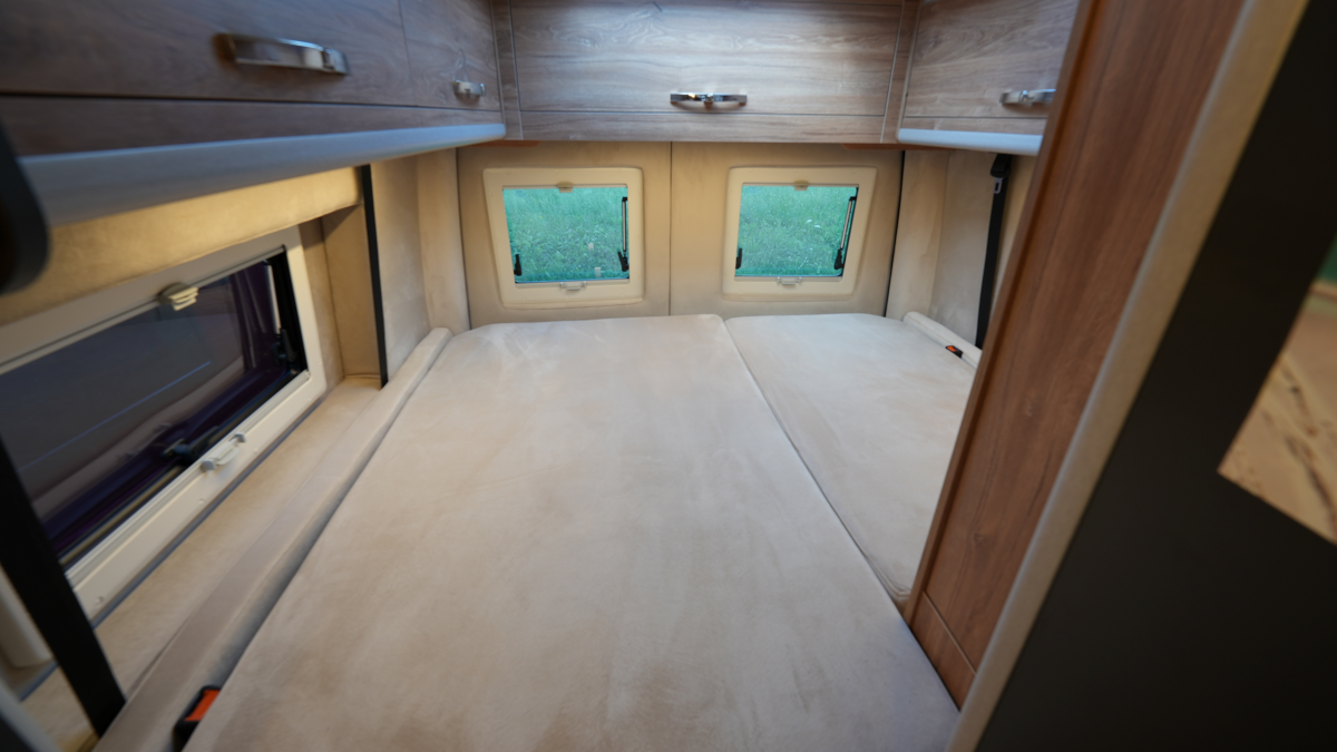 - großzügiges Heckbett, elektrisch stufenlos höhenverstellbar mit zwei Bedienelementen (modellabhängig)