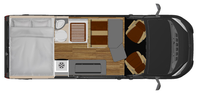 • ​​​​​Auswahl von Holzdekor und Sitzbezügen inkl. Fahrerhaus ohne Preisaufschlag