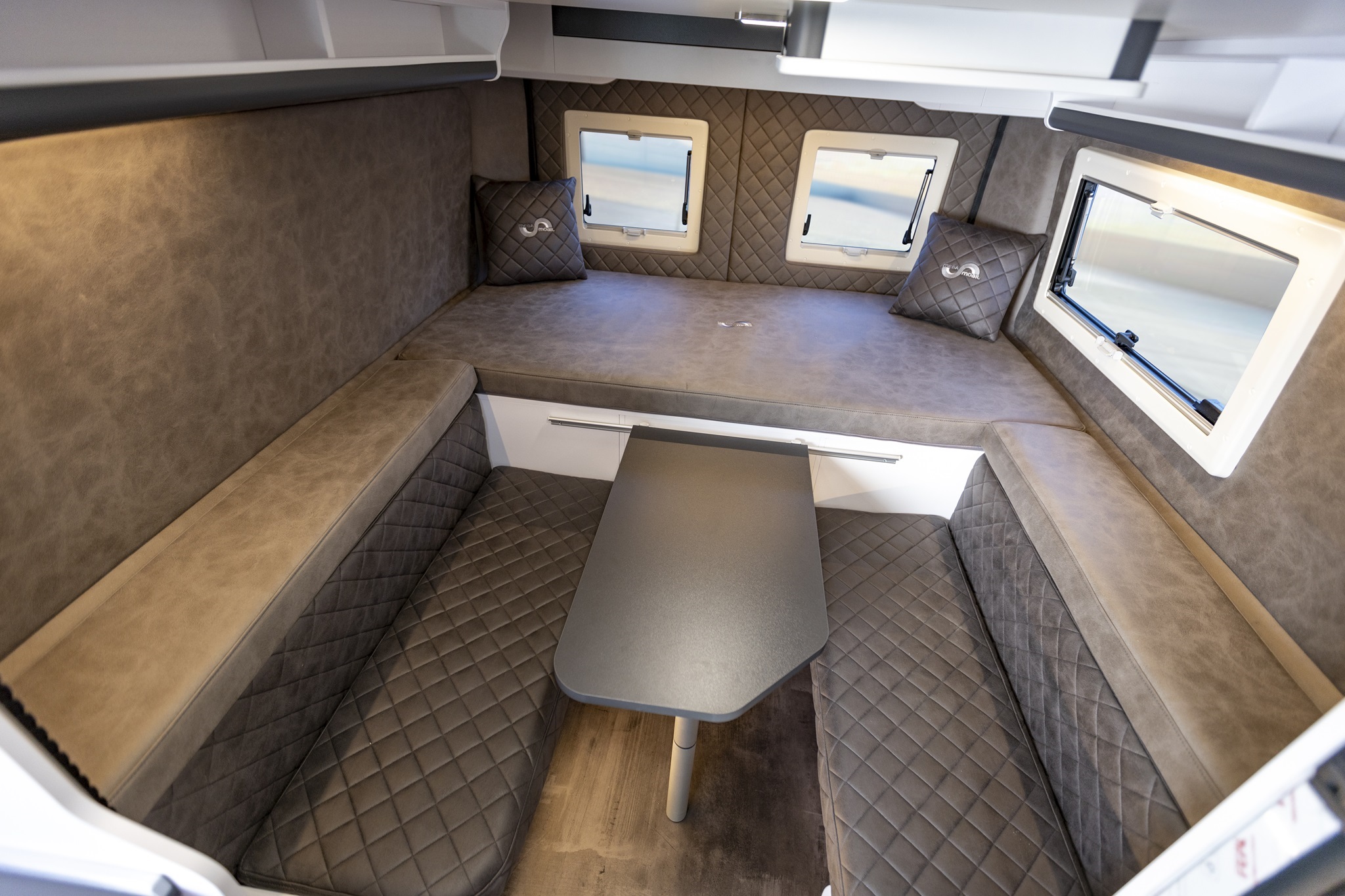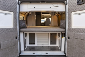Entworfen für Abenteurer, die Komfort nicht missen möchten, bietet dieses elegante Fahrzeug eine vielseitige Lösung für das Leben unterwegs. Dank seiner kompakten Größe ist das Navigieren durch enge Stadtstraßen oder kurvige Landstraßen ein Kinderspiel. Seine Wendigkeit sorgt dafür, dass Sie jedes Gelände mühelos bewältigen können, während seine praktischen Funktionen das Leben auf der Straße erheblich erleichtern. Zudem lässt sich das innovative Hubbett zusammen mit dem hinteren Lounge-Bereich mühelos in einen gemütlichen Schlafplatz als Längsschläfer oder einen entspannten Rückzugsort verwandeln – perfekt, um nach einem erlebnisreichen Tag abzuschalten. Ob Wochenendausflug oder eine Reise quer durchs Land – dieses Fahrzeug ist der ideale Begleiter.