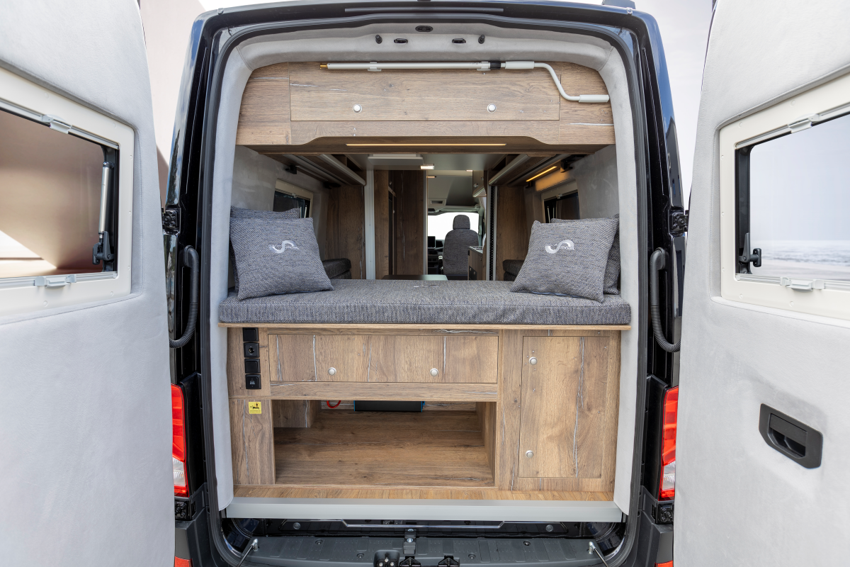 - Schublade als Trittstufe für das Heck Bett mit zusätzlichem Stauraum (abwählbar)