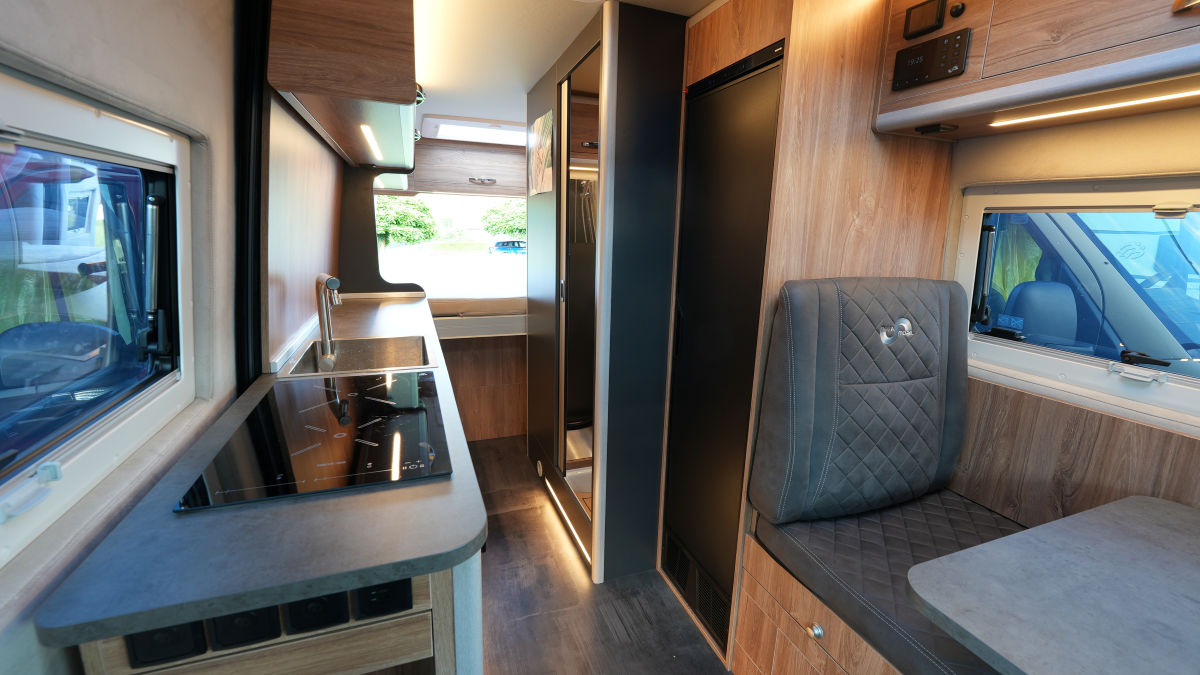 Der Travel 2 glänzt mit seinem großzügigem Innenraum und großer und geräumiger Küche mit XXL Kühlschrank.